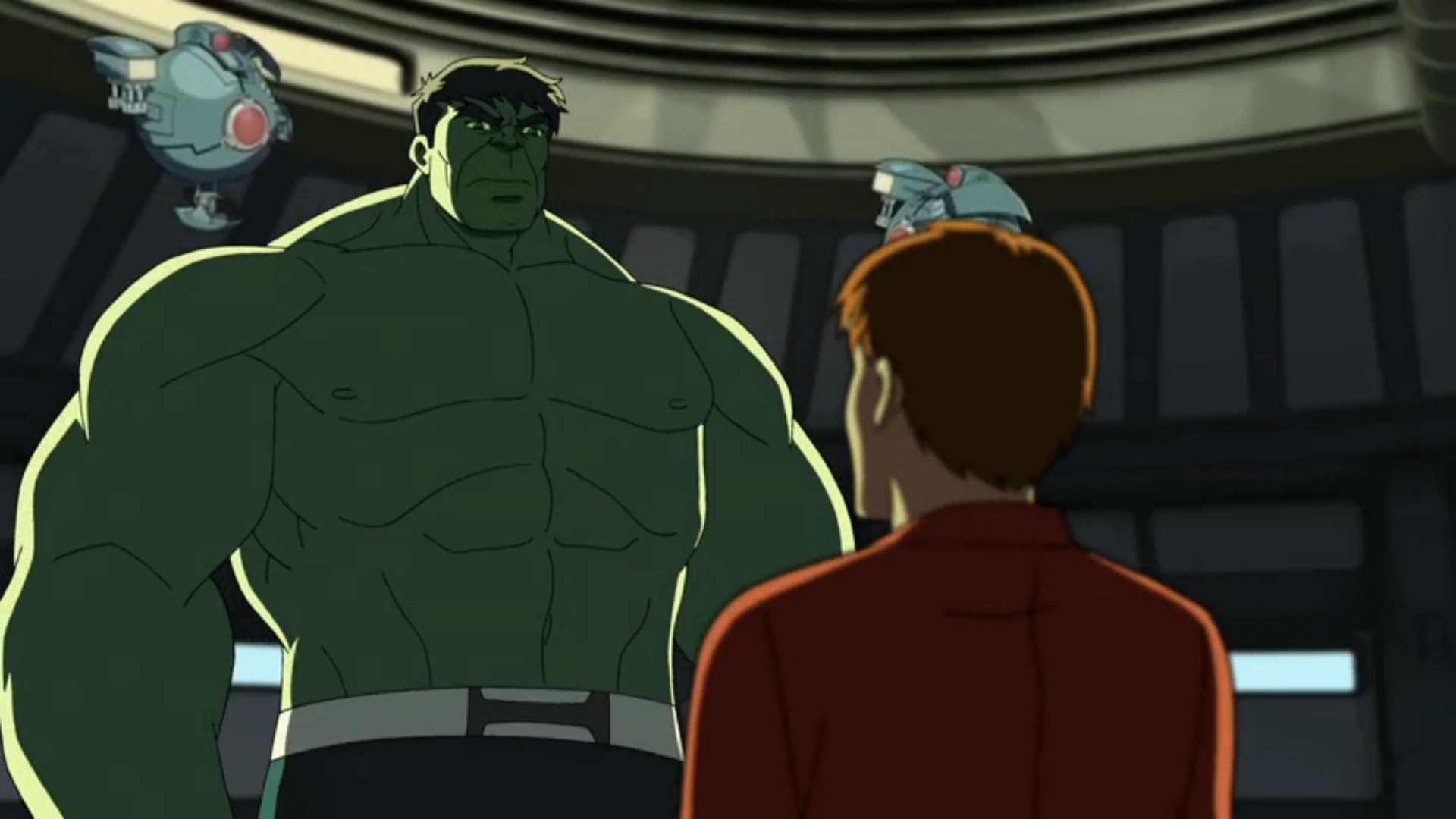 The episode begins with an old footage of the Hulk going on a rampage against the military forces, lead by General "Thunderbolt" Ross. The footage is stopped, and Rick begins narrating about how Hulk used to be. He continues by adding that he'll use the cameras from the project to show a side that the military never showed. He heads down the mountain to where Hulk is lifting weights, and reveals the news, to which Hulk dislikes. Before the matter can be properly discussed, an alarm goes off, alerting the duo of trouble. Hulk heads off to save the Earth, telling Rick to stay put.